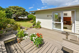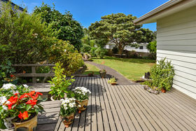 You will love this warm, light-filled family home for its space, location, beautiful level site and landscaped grounds with mature fruit trees. Loads of large windows and ranch-sliders open from all living rooms and bedrooms to extensive decking. Treasured by one owner for 34 years, it is ready for a new family to claim and enjoy.