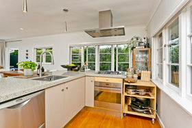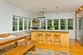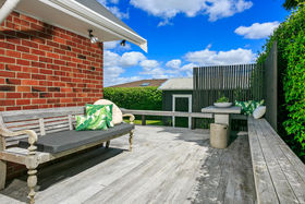 Standing majestically on a corner site this charming 1950s home offers plenty to a growing family. A backyard which is facing northwest, privacy from the road, room for the kids to play and run around. The main home itself has three double bedrooms, and two bathrooms with the master being on the top level with its own ensuite and walk in wardrobe. The kitchen, dining and living area, which can be closed off from the rest of the home ( great for kids sleep time) is open plan and has direct indoor outdoor flow onto a large deck which wraps around for the sun aspect and excellent for entertaining.