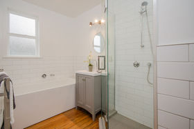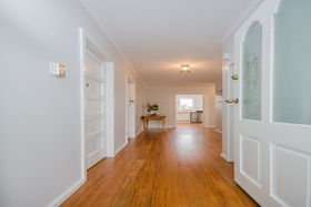 Distinctive spearmint green on the exterior, neutral tonings on the interior, this freshly refurbished 1950s home celebrates its retro features. Soaking up the sun, the north-facing living area will be the perfect place to curl up with a book during the winter months to come. On warmer days you can open the french doors and spill out to the wrap round deck and step down to the grassed area beyond. Cooking will be a pleasure in the brand new kitchen and entertainers will appreciate the adjacent separate dining room. All three bedrooms are generously sized doubles and a study nook could be created in the broad entrance hall. You can catch your reflection in the tiles of the sparkling new bathroom. There's a warm glow that comes from the recently restored native timber floor boards.