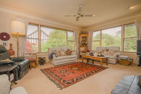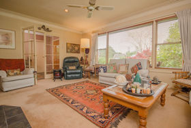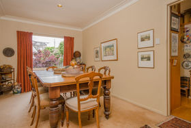 Filled with classic features, the home offers three bedrooms (two double bedrooms and a smaller third bedroom and/or office). A spacious open-plan lounge, formal dining, and kitchen/dinette are superbly positioned facing a northerly aspect overlooking the beautiful established gardens. Downstairs is an internal access garage ideal for a smaller car, and ample under house storage, there is a bonus freestanding double carport which offers additional covered parking.
