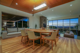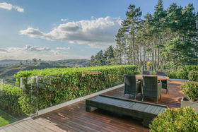 Set atop 5651 square metres of land and looking out over a glorious green lawn sloping towards incredible natural views and further stunning elevated views back towards Auckland City and the Sky Tower.