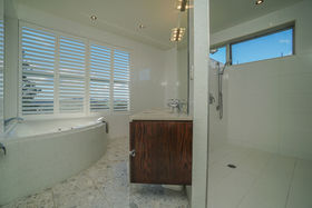 The cool, clean interior is warmed nicely with timber floor features and quality floor coverings.