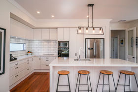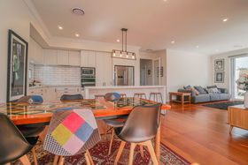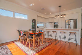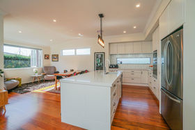Situated perfectly, with a northerly aspect in an elevated, private, tranquil ROW setting, 597m2 freehold section. This stunning open plan kitchen offers plentiful storage and vast stone benches. A large central island, perfect for casual dining, the hub of the home, providing a beautifully light and warm space to sit back and relax with family and friends.