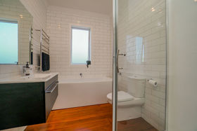 Accommodating a master room with freshly tiled ensuite and three further bedrooms with a smart tiled bathroom including a bath and separate shower. With the ducted heat pump, the entire house is warm and cosy. New wiring and plumbing gives you complete peace of mind. The large single garage includes massive storage under the home, plus a carport and extra off-street parking.