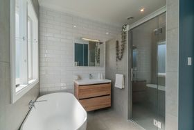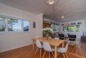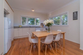 A freehold title, this stylish three bedroom 1940's bungalow has been tastefully renovated. Nestled along a driveway, well off the road, sunny, private and peaceful. Enjoy an open plan lifestyle spilling out to a paved patio, decking and gardens with an outdoor fireplace, fun to gather around and toast marshmallows... Fresh paint, new carpet in the bedrooms, with the warm glow from polished native timber floors throughout the living areas. You'll love the contemporary tiled bathroom, complete with double shower, this will be the envy of many. A separate laundry with ample bench space plus excellent storage throughout the home, including into the roof with a pull down staircase.