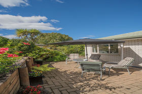 The warm and comfortable open plan living area accesses a paved rear courtyard running the length of the house that basks in sunshine from dawn to dusk. This is bordered with a colourful easy-care shrubbery. The home captures all day sun, saving on winter heating bills