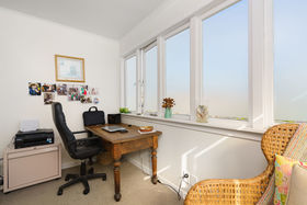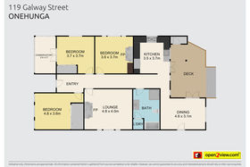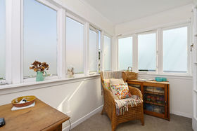 The master bedroom has wall to wall wardrobes and plentiful natural light, another bedroom opens to a sunroom, offering an ideal office space. All three double bedrooms are serviced by a modern bathroom complete with bath and shower and a convenient second 'loo' by the rear deck. Plenty of off-street parking with a fenced and gated rear garden.