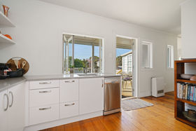 A generous living room, light and bright with large sash windows, defined by a feature wood burner fireplace cosy and warm, or for sheer simplicity, flick on a gas heater. Family life bounces between indoors and outdoors with the highly spec'd kitchen overlooking the rear garden, perfect to feel part of summer al fresco fun whilst socializing with friends on the sunny rear deck. Premium kitchen cabinetry and real attention to detail, this much loved area, complete with large oven, gas hob and generous stone bench top is an entertainer's dream...