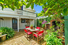 The cobbled brick courtyard features an open fireplace and established tulip tree providing dappled light for afternoon and evening soirees and memories to savour.