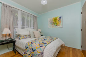 The sun-filled lounge opens through to the generous sized kitchen with a multitude of options to remodel and has the added bonus of large windows overlooking lush green established trees, a tranquil setting. Polished timber floors throughout and both bedrooms are doubles, the master is particularly light and bright and includes a double wardrobe. A practical bathroom with a shower over the bath and a separate toilet.