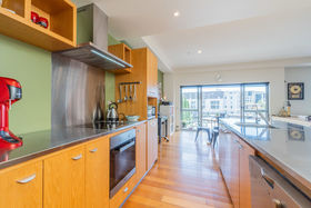 Two big bedrooms. Main bathroom and one en-suit. Well appointed kitchen with open plan feel in the living room. Spacious at 100 square meters with outdoor flow off the lounge to the deck. Two covered car parks and secure storage lockers.